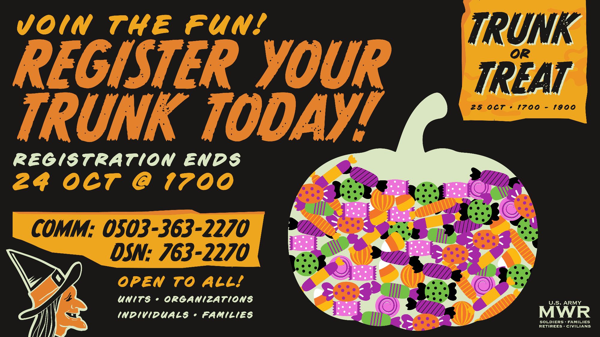 - During the event, visit the Camp Walker CAC and enter our costume contest for a chance to win exciting prizes!